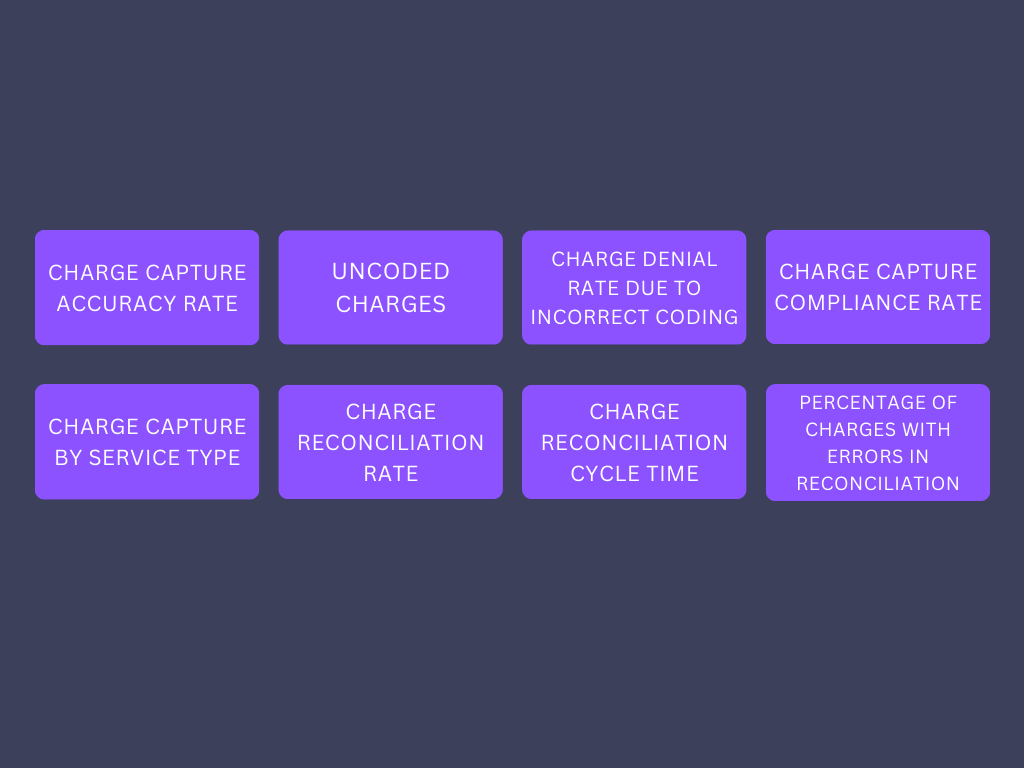 This KPI helps determine if you're documenting charges in line with the organization’s internal policies and external regulations. Aim for a high compliance rate, ideally above 99%, to avoid penalties and disputes.