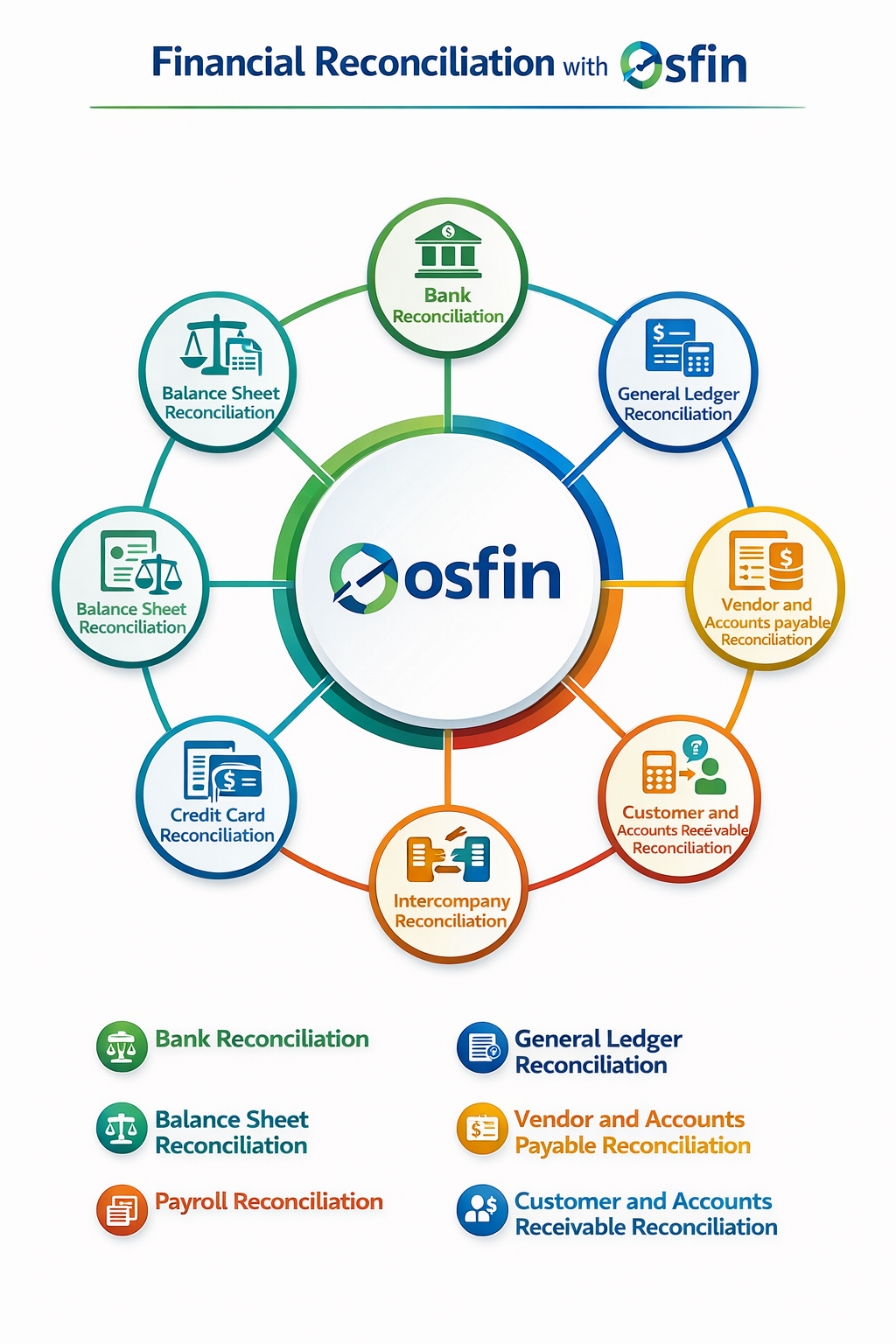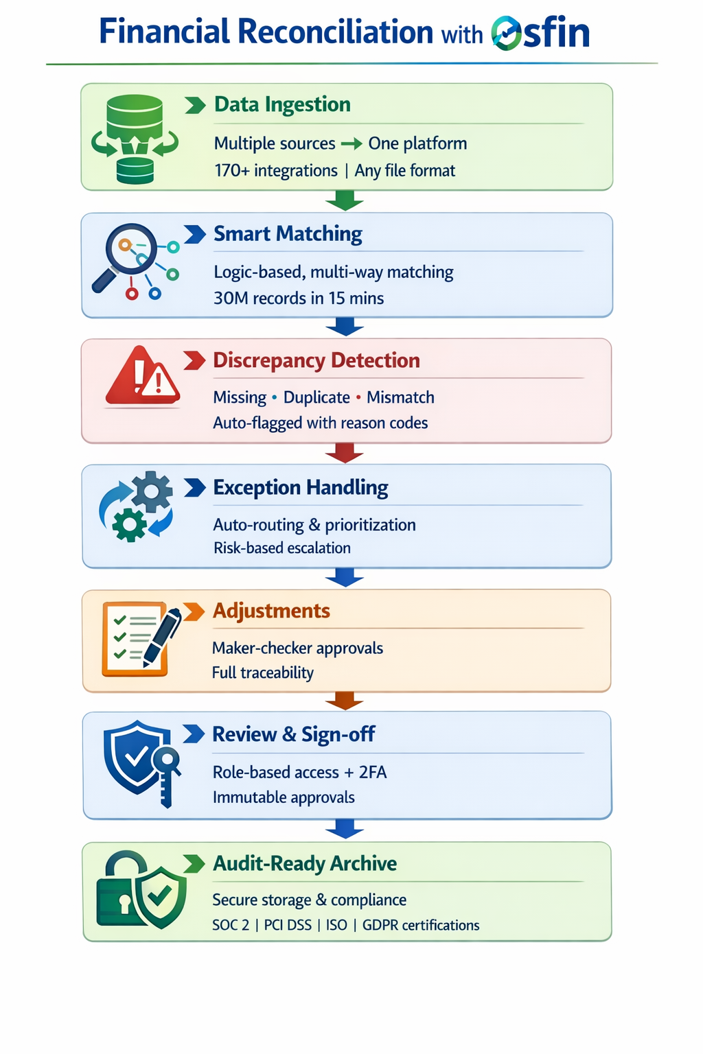 Given below is a complete step-by-step workflow of a financial reconciliation process with Osfin:
