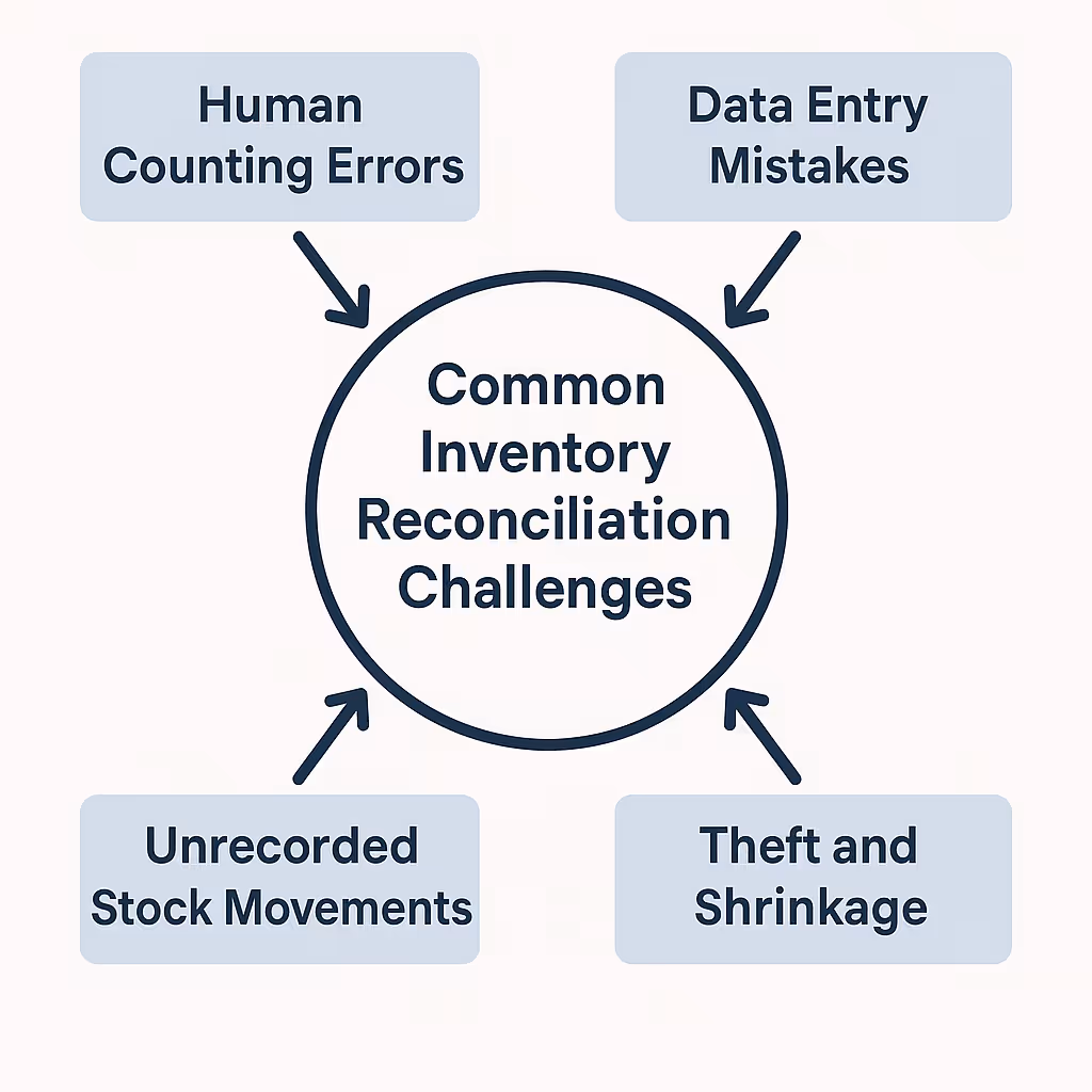 Even with the best tools and processes in place, inventory reconciliation can present real-world challenges that impact accuracy and efficiency. Recognizing these issues is the first step toward solving them. Here are some of the most common inventory reconciliation issues that may come up: