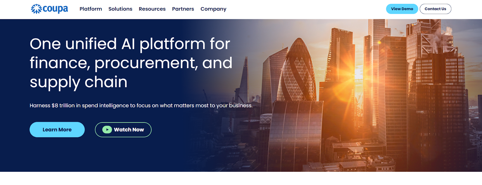 Coupa is an AI-native platform that focuses on business spend management. It helps businesses gain visibility into cash flow and make cost-saving decisions with AI-driven recommendations. Coupa’s “Compliance-as-a-service” feature makes compliance easy by handling e-invoicing mandates and global tax regulations across 50+ countries.