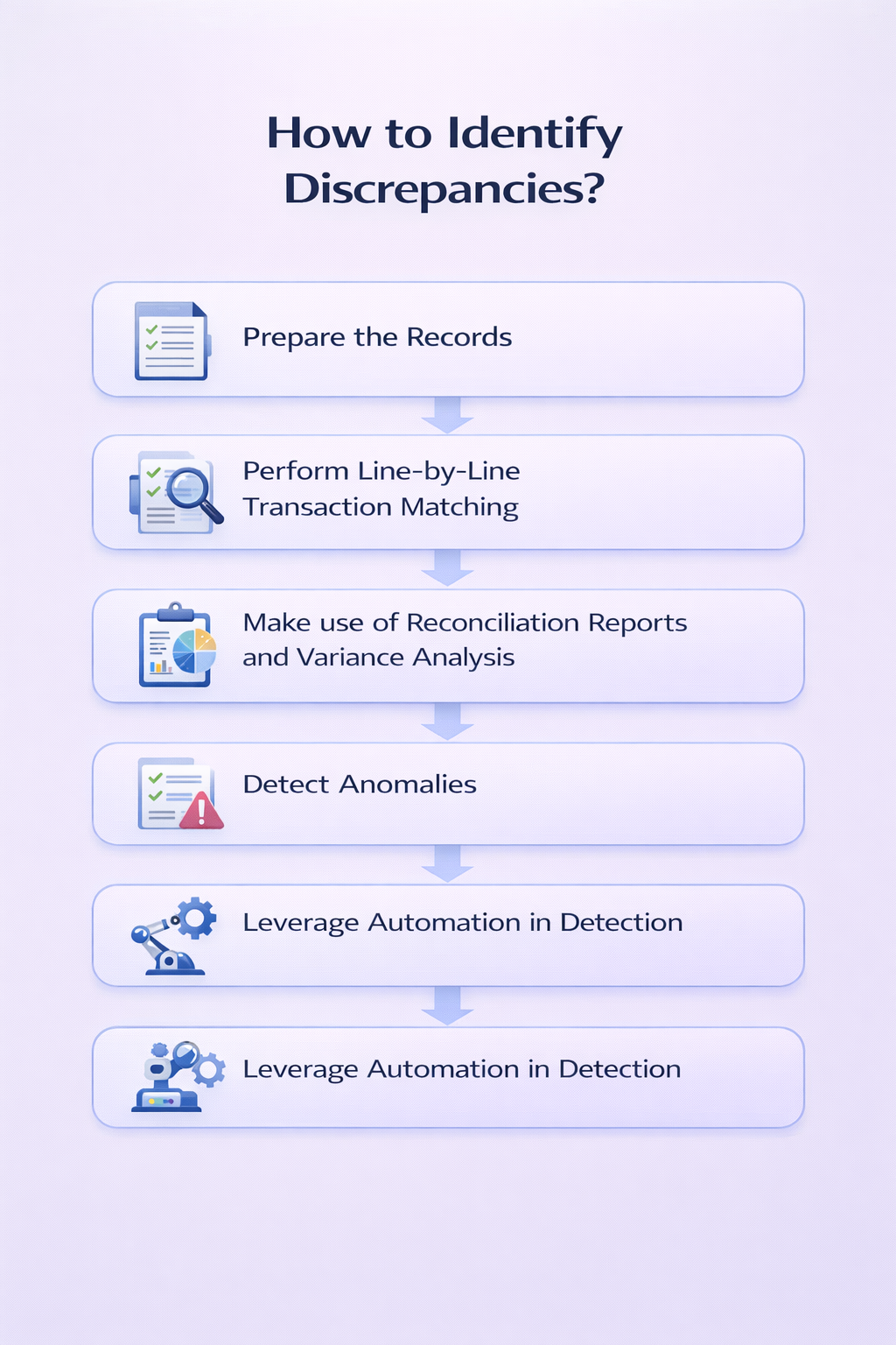 To identify reconciliation discrepancies, you should first start by preparing clean, comparable data, then match and review the exceptions. All banks and financial institutions need to maintain 100% accuracy and audit-ready books; hence, all discrepancies, whether small or big, need to be addressed properly.